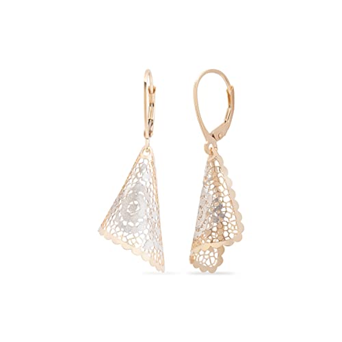Gioiello Italiano - Orecchini "Velo" in oro 14kt, tre colorazioni a scelta, lunghezza 3.8cm, da donna