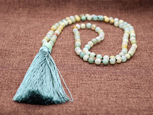 COAI Gioiello Unisex in 108 Perle Mala in Amazzonite Annodate a Mano, Collana per Meditazione 8mm