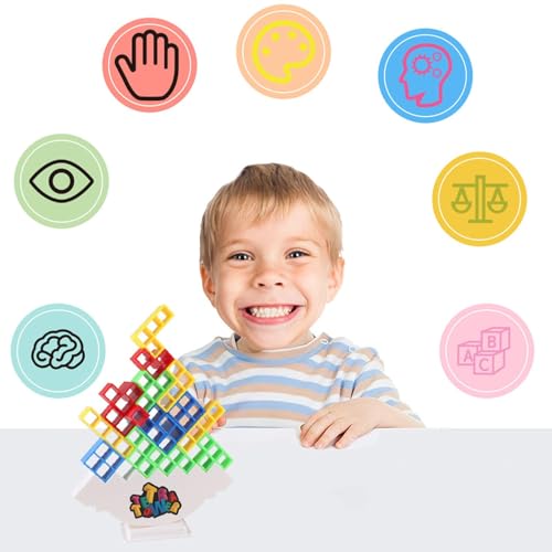 GIONAR Gioco Della Torre Di Squadra Per Bambini E Adulti, Gioco Di Impilamento Di Blocchi Puzzle, Gioco Stack Attack Per Adulti, Gioco Di Blocchi Di Equilibrio Tetra Tower (48Pcs)