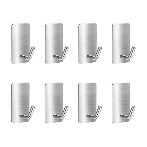Giookuj Ganci Adesivi Bagno in Acciaio Inox Argento SUS304 Ganci Autoadesivi Ganci da Parete Ganci Cucina Ganci Portasciugamani 8 Confezioni