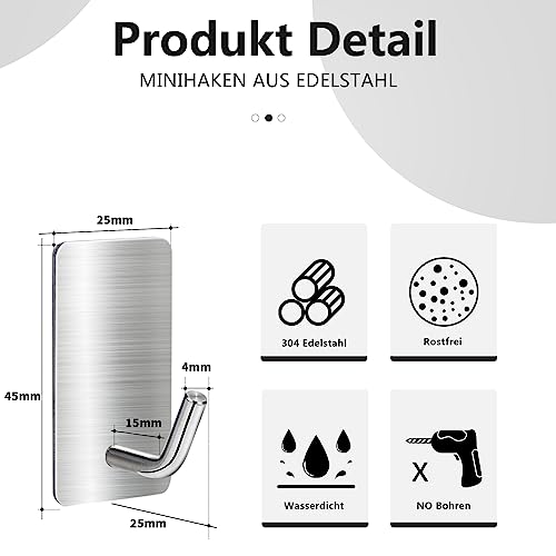 Gancio Adesivo in Acciaio Inox: i ganci per asciugamani sono realizzati con materiali di alta qualità SUS304, robusti, resistenti e antipolvere. I ganci di piccole dimensioni 45*25 mm consentono di risparmiare spazio sulla parete.