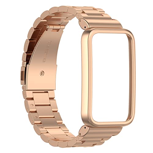 GIOPUEY Cinturini Compatibile con Xiaomi Mi Band 7 Pro, Acciaio inossidabile Cinturino [Resistente All'usura] - rose gold
