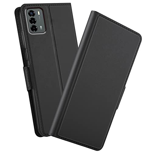 GIOPUEY Cover Compatibile con ZTE Blade A72/V40 Vita, [Sottile e Leggero] Staffa Verticale Portafoglio in Pelle Custodia [Porta Carta] Antiurto Anti Impronta Digitale Case - Nero