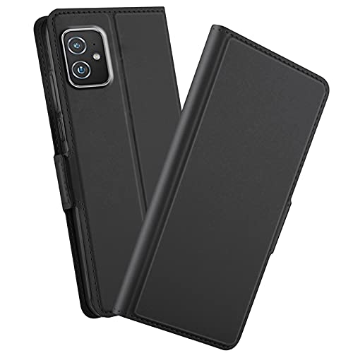 GIOPUEY Cover Compatibile con ASUS Zenfone 8, [Sottile e Leggero] Staffa Verticale Portafoglio in Pelle Custodia [Porta Carta] Antiurto Anti Impronta Digitale Case - Nero