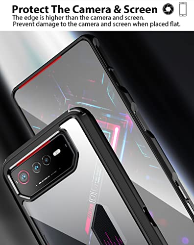 GIOPUEY Cover per ASUS ROG Phone 6 / 6D, Trasparente PC + Silicone TPU Assemblato Case, [Antiurto] [Scivolare] Comfort Ultrasottile Custodia [Protezione a 360 Gradi] (Nero)