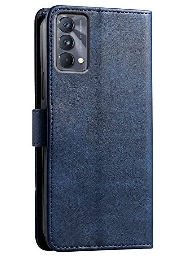 GIOPUEY Cover per Realme GT Master Edition, Staffa Verticale Portafoglio in Pelle Custodia [Porta Carta] [Nuovo Materiale] Antiurto Anti Impronta Digitale Case - Blu