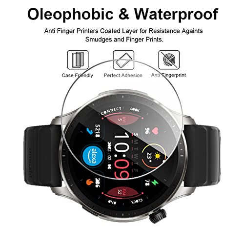 GIOPUEY Pellicola Protettiva per Amazfit GTR 4, [4 Pezzi] Vetro temperato Schermo Protezione Pellicola [Copertura Completa] [Anti-graffio] - Trasparente
