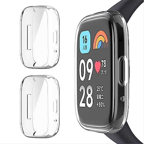 GIOPUEY [2 Pezzi] Cover per Xiaomi Redmi Watch 3 Active, Soft TPU, Shock Resistant, Xiaomi Redmi Watch 3 Active Custodia - Transparent+Transparent