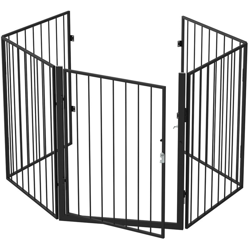 Cancelletto di Protezione Cancello Cancelletto Protezione Camino Cani e Bambini Recinto Divisorio 3mt Nero Proteggi i tuoi bambini o i tuoi animali domestici con il nuovo cancelletto di protezione per camini. Questo fantastico cancelletto è realizzato con una solida struttura in acciaio verniciata a polvere in colore nero è formato da 5 moduli pieghevoli che vi permetteranno di adattare il cancelletto in varie posizioni soddisfacendo qualsiasi tipo di esigenza. Questo fantastico cancello inoltre è fornito di comoda apertura con chiusura di sicurezza a chiavistello e serratura utile per attraversare il cancello in totale sicurezza senza doverlo scavalcare. Il cancello di sicurezza di oltre al suo normale utilizzo può essere utilizzato anche come: recinto per cuccioli, divisorio tra stanza e stanza, cancelletto per porte e tanti altri. Quando non utilizzato il cancelletto di protezione può essere completamente piegato e riposto facilmente anche negli spazi più stretti occupando il
