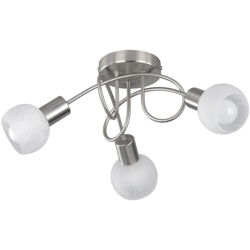 Plafoniera Plafoniera da Interno Attacco E14 in Metallo Nichel Opaco Antibes Girandola 3 Spots Acciaio Dec. Cromo Att. E14 Diff. Vetro De. Alab. D. 45 Caratteristiche Tecniche Stile Moderno Fonte di luce principale: Lampadina (non inclusa) Attacco E14 Materiale: Metallo Colore Finitura: Nichel opaco Potenza (W): 4 Lumen: 320 Kelvin: 3000K Alimentazione (V): 230 Durata Nominale (h): 25000 Numero Accensioni: 12500 Classe energetica: A+ Altezza (cm): 20 Diametro (cm): 47 Peso netto (kg): 1,175