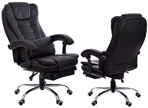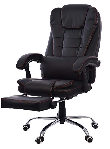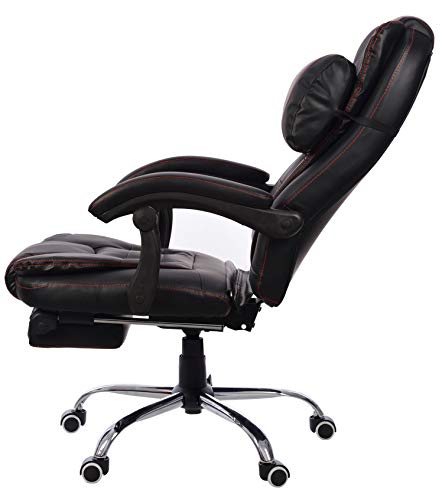 Giosedio FBK Ergonomica elegant Sedia, Larga con braccioli e poggiapiedi (Nero con filo rosso)