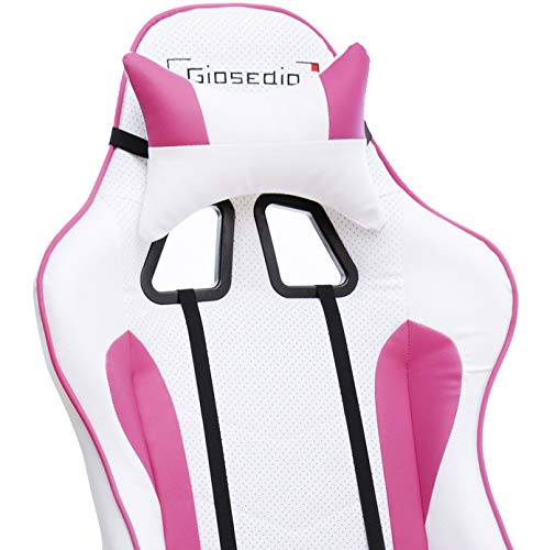 GIOSEDIO GSA Sedia Gaming, Sedia Scrivania, Sedi di Gioco, Gaming Chair, Poltrona Ufficio Similpelle,Altezza Regolabile, Girevole, Larga Sedia ergonomica da Alta (Bianco/Rosa)
