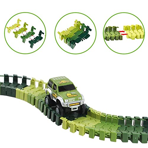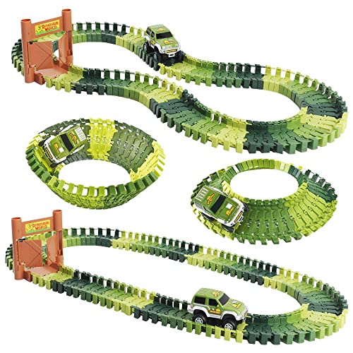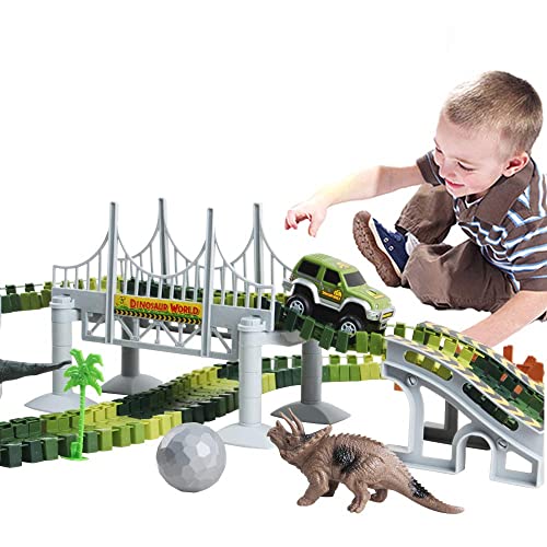 DeAO Giostre nel Parco Giurassico Circuito delle Auto Mondo dei Dinosauri Set Include Tracce Flessibili, Veicolo, Dinosauri e Accessori