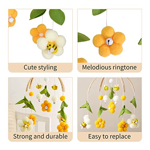 【Stile carino】 I giostrina della baby room hanno un'atmosfera da favola. Il ciondolo presenta graziose api, fiori gialli e giallo chiaro e foglie verdi. I colori sono freschi e luminosi, portando nella stanza un'atmosfera primaverile e calda.