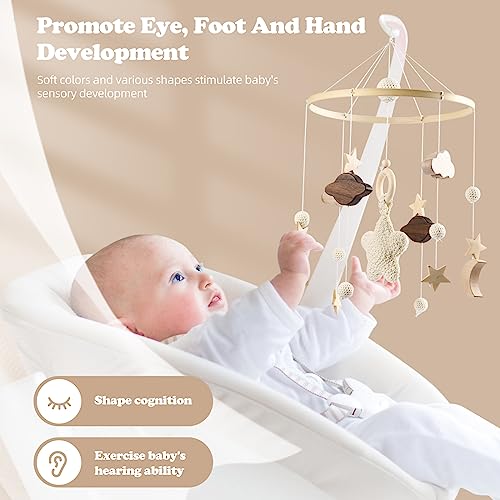 【Regalo per neonati】: Questo mobile for bassinet, giocattolo mobile per presepe in legno è un ottimo regalo per i neonati. Può essere appeso a una culla, passeggino o culla come giocattolo da letto. Un buon compagno per i bambini, lo adoreranno.