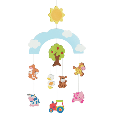 Benvenuto nella fattoria! Questa giostrina adorna la cameretta con colori e allegria. Dettagli: Dimensioni: 20 x 55 cm Materiale: Legno Pezzi: 10 Adatto a bambini dai 0 mesi Attenzione: Articolo decorativo. Non è indicato per il trasporto di persone. Contiene piccoli pezzi che potrebbero essere ingeriti.