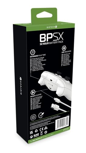 Gioteck High Capacity Battery (1400 mAh) for Xbox Series X S Wireless Controller, 32 Hour Battery Life, Includes 3 Metre Plug And Play Cable - White