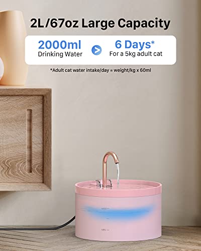 GIOTOHUN Fontanella per Gatti, Fontanella Gatti, 2L Fontanella Gatto, Forma di Rubinetto, Pompa Dell'acqua Super Silenziosa, Include 6 Filtro + 3 Spugna, Rosa