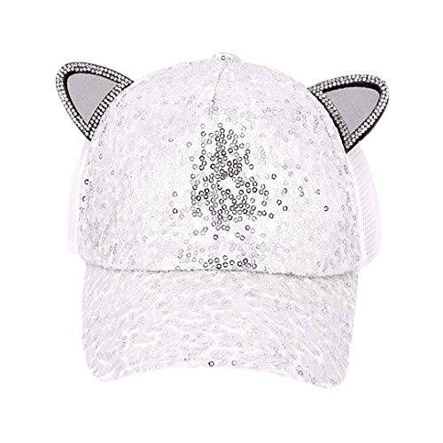 Giovacker - Berretto da baseball con paillettes scintillanti, con orecchie da gatto, regolabile, Kl574p Sweatshirt - Bambini, Taglia unica