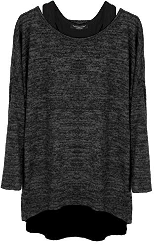 Emma & Giovanni - Maglie a Manica Lunga (2 Pezzi) Made in Italy - Donna (Nero, S-M)