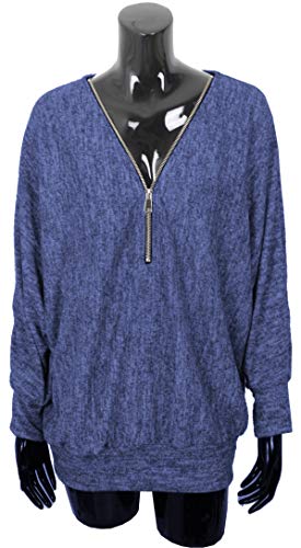 Emma & Giovanni - Top con Mezza Zip Top Oversize - Donna (Blu, M-L)