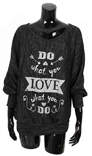 Emma & Giovanni - Oversize Maglie a Manica 7/8 Lunga Love - Donna (Nero, S-M)