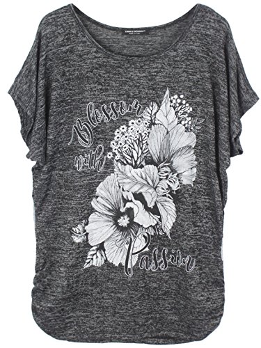 Emma & Giovanni - T-Shirt/Top Fiori - Donna (Nero, S/M)