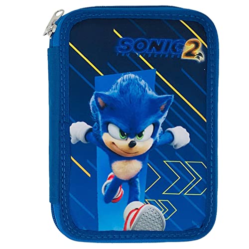 GIOVAS Astuccio Sonic The Hedgehog - Astuccio a 2 ripiani, con cerniera, colore: blu, blu, Astuccio