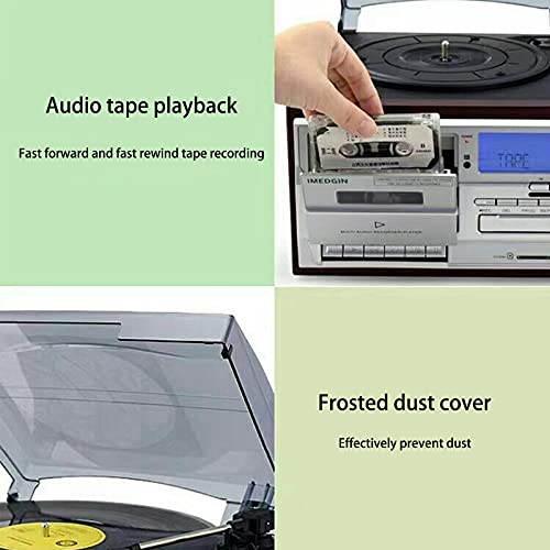 Giradischi Bluetooth Giradischi in Vinile Con Altoparlanti, Giradischi Da Vinile A MP3 Con Riproduzione Di Cassette, Radio AM/FM, Telecomando, Codifica USB/SD,Marrone