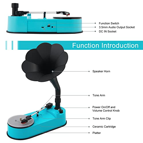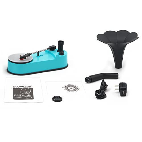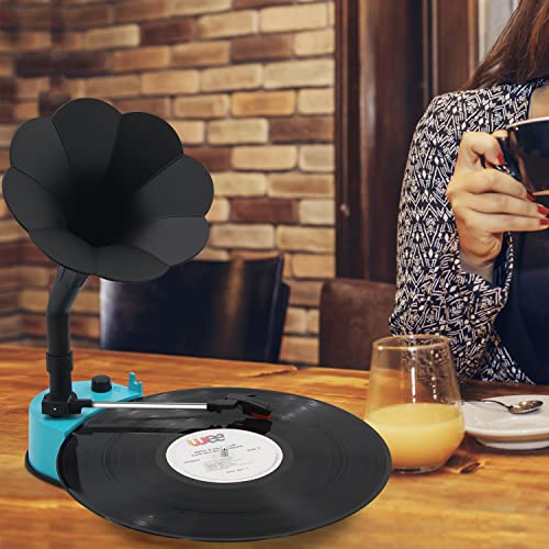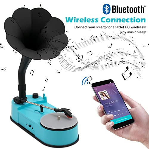 Giradischi Bluetooth in vinile Gramofono con altoparlante a corno per dischi in vinile 33/45 giri/min, giradischi Wirlesss, blu