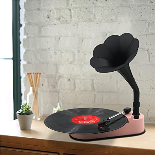 Giradischi, Bluetooth in vinile Gramofono con altoparlante a corno per dischi in vinile 33/45 giri/min, giradischi di riproduzione senza fili, rosa