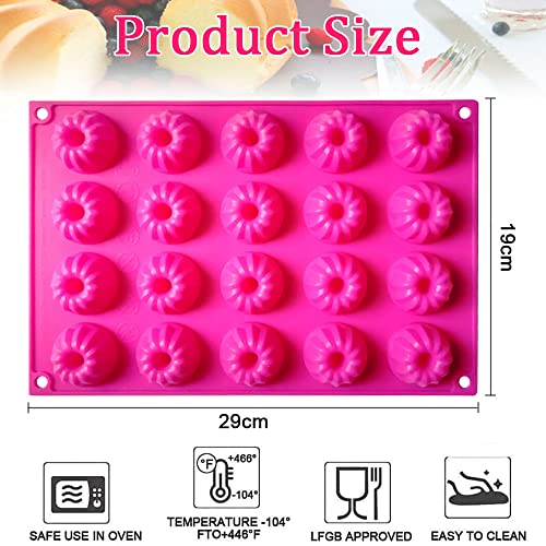 【Stampo in silicone durevole di alta qualità】 Lo stampo per torta Bundt è realizzato in silicone alimentare, che non produce sostanze tossiche e nocive durante l'uso, non contiene BPA, è sicuro ed ecologico, può essere riutilizzato e ha una lunga durata . La dimensione dello stampo in silicone è 29 * 19 * 2,1 cm e ci sono 20 modelli di ciambelle nel foglio singolo, quindi puoi facilmente realizzare 20 piccole torte alla volta