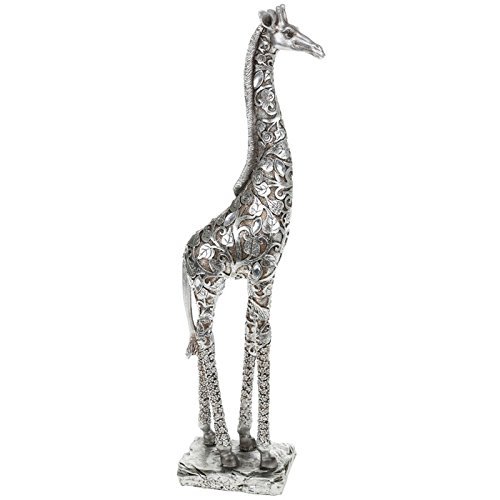 Giraffa Statuetta - Grande Argento Giraffa - Decorativi Foglie (45635)
