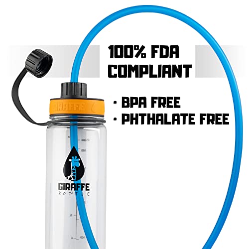 Grande tubo flessibile per bere - dotato di tubo flessibile da 121 cm - poiché parte è all'interno della bottiglia, la lunghezza totale che esce dal tappo è di circa 91 cm. Ideale per le persone con piena funzione polmonare e bocca. Il tubo non mantiene il sapore dopo il lavaggio. Una piccola clip per abbigliamento in metallo è inclusa per aiutare a sostenere il tubo per bere.