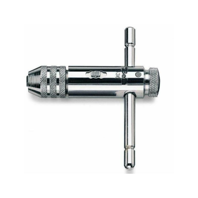 Descrizione Giramaschi a cricchetto reversibile cromato. Per filiere da M4,6 a M8 Lunghezza mm: 110 Peso g: 285