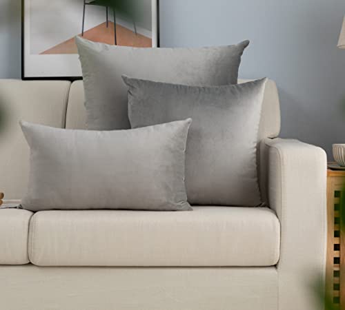 GIRASOLE HOME Coppia Federe Cuscini in Velluto Per Divano e Letto Copricuscini Antiacaro e Ipoallergenico Arredamento Casa con Zip Invisibile 2 pezzi (60x60cm, Grigio)
