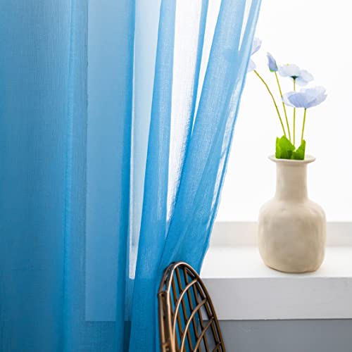 GIRASOLE HOME Coppia Tende Voile Semi Trasparenti Colore Sfumato Bianco e Azzurro Tenda per Soggiorno Camera Cameretta Cucina e Interni 2 Pannelli con Occhielli 140x275cm