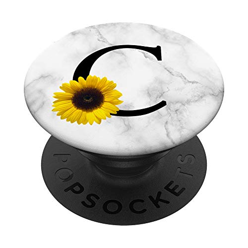 Girasole Giallo, Lettera Nera C Monogramma Iniziale PopSockets Supporto e Impugnatura per Smartphone e Tablet
