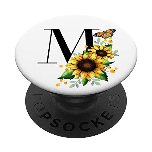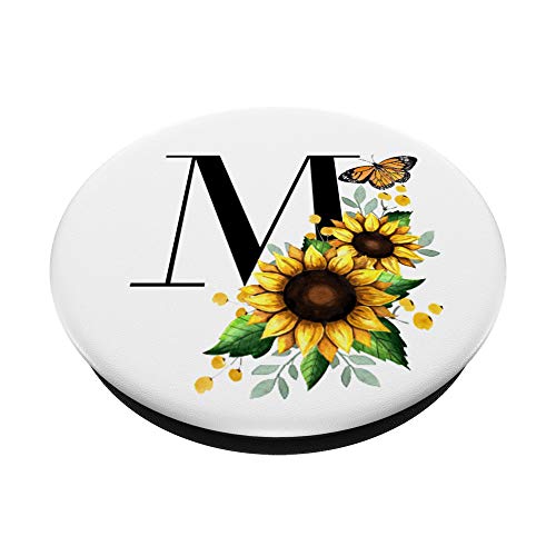 Girasoli Con Farfalla Giallo Acquerello Bianco Lettera M PopSockets PopGrip: Impugnatura per Telefoni Cellulari e Tablet Intercambiabile