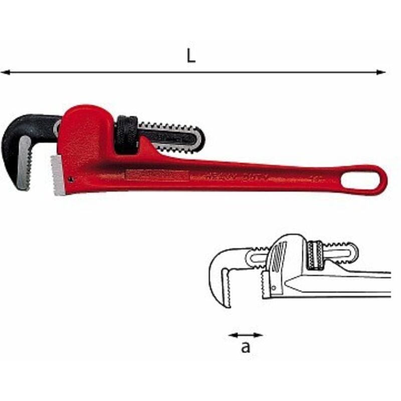 GIRATUBI MODELLO AMERICANO 302 N - Dispositivo a doppia molla per il bloccaggio immediato del tubo ed una rapida ripresa della manovra - Corpo in ghisa malleabile - Ganasce in acciaio al Carbonio Caratteristiche: L Capacit� tubo a 250 mm 1 �" 48 mm 350 mm 2" 60 mm 450 mm 2 �" 73 mm