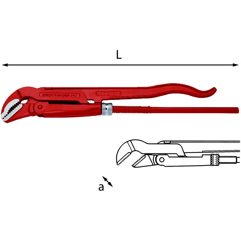 GIRATUBI MODELLO SVEDESE CON GANASCE A 45° SOTTILI E DIRITTE 311 N Acciaio al Cromo Vanadio Codice L mm Capacità tubo a mm U03110001 270 1/2 25