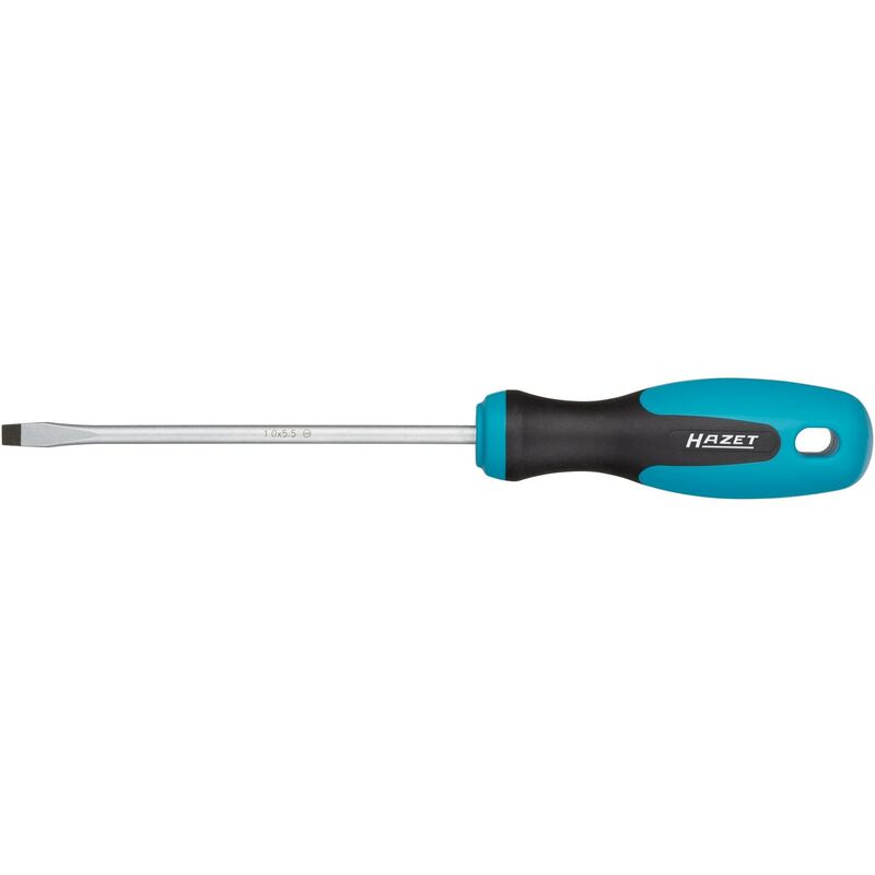 Foro nel manico per appendere il prodotto Lama tonda Impugnatura antiscivolo tricomponente HAZET per alte trasmissioni di forza Superficie: lama cromata opaca, punta brunita Presa di forza: Profilo ad intaglio Apertura chiave: ∙ 1 x 5.5 mm Dimensioni / Lunghezza: 230 mm Lunghezza l1: 125 mm Forma della lama Rundklinge Larghezza lama 5.5 Lunghezza maniglia 105 Unità di uscita Schlitz Profil Diametro della lama 5 Dimensioni dell'imballaggio 1 Impugnatura Rutschfester HAZET 3-Komponenten-Griff - für hohe Kraftübertragung Superficie Klinge mattverchromt, Spitze brüniert