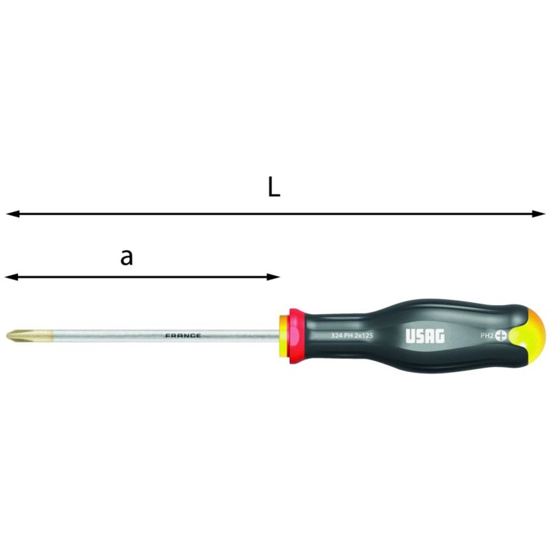 Giravite PH 3 Giravite con impronta a croce phillips Art. 324 PH_3X150 Lunghezza a: 150mm Lunghezza L: 275mm Punta zincata che garantisce un'elevata resistenza all'usura ed alla corrosione Lama in acciaio al Cromo Silicio Vanadio per un'ottima resistenza alla flessione Impugnatura ergonomica tri-materiale con rivestimento soft grip, resistente ad oli ed agenti chimici Codice colore sull'impugnatura per distinguere le diverse impronte