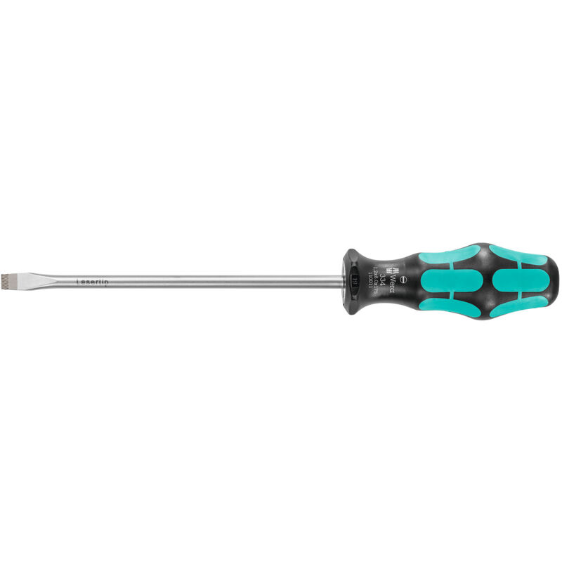 Lame forgiate, le punte si adattano perfettamente alle impronte normalizzate delle viti. L'impugnatura Kraftform in plastica resistente agli urti, con zone morbide integrate facilita la trasmissione del momento torcente e pertanto non stanca né mano né braccio. Lama in acciaio speciale altamente legato. Superficie cromata nicromatt, punte brunite o Lasertip rivestite chimicamente con nichel. Norma: DIN 5265 Form A Nota: La massima durata dei girativi a norma è garantita se i giraviti vengono utilizzati su viti con intaglio secondo normativa, e quindi con corrispondenza esatta (vedi tabella). Dati tecnici Tipo di prodotto Giravite Lunghezza complessiva, mm 287 Lunghezza lama, mm 175 Larghezza delle punte b, mm 8 Spessore delle punte a, mm 1,2 Punta della lama Lasertip Denominazione originale prodotto 334