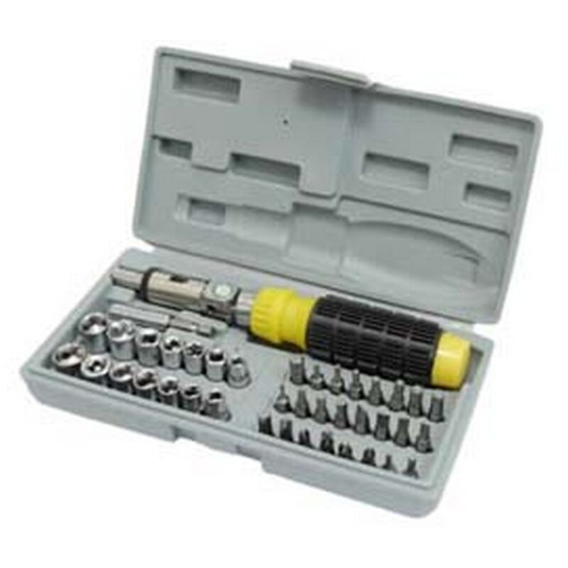 Componenti in acciaio cromato, contenuto: 7 chiavi a bussola esagonali quadro 1/4 misure mm.6-7-8-10-11-12+ 7 bussole esagonali quadro 1/4 misure in pollici 7/32-1/4-5/16-11/32-3/8 -7/16-1/2 + 24 inserti assortiti con punta a taglio/pozdrive/torx