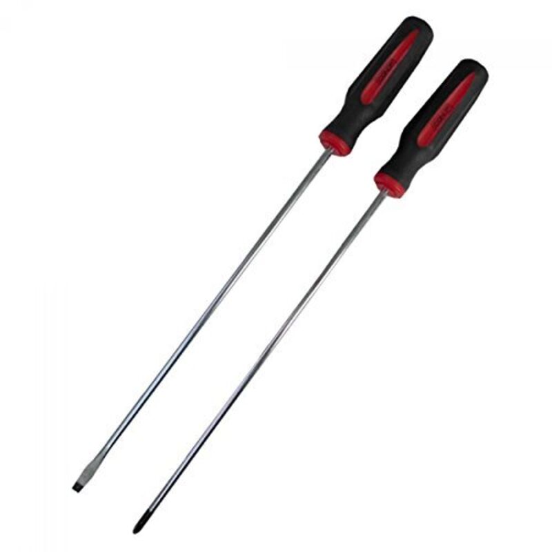 Set giraviti lunghi crv pz 2 Masidef Set di giraviti lunghi crv composto da due pezzi: 1 a croce e 1 a taglio Caratteristiche: 1 pz. a croce Phillips: PH2 x 300 mm 1 pz. a taglio 6 x 300 mm manico bimateriale ergonomico antiscivolo lame in acciaio cromo vanadio punta magnetica confezione: placchetta appendibile