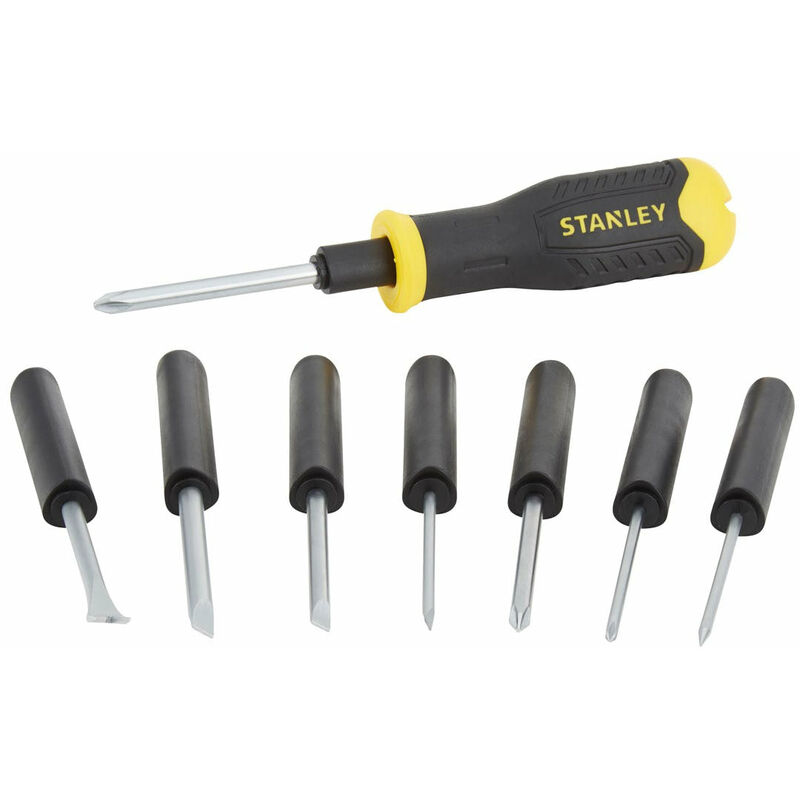Kit giravite multilama con 8 lame in custodia trasparente. Composizione: 3 Lame a punta standard 3 Lame a punta Phillips Punteruolo Levachiodi Impugnatura