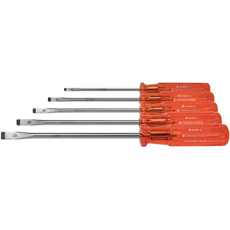 Lame forgiate, le punte si adattano perfettamente alle impronte normalizzate delle viti. Impugnatura robusta “Classic” in plastica trasparente e resistente agli urti (senza cadmio). Lama in lega speciale PB Swiss Tools particolarmente tenace e dall'elevata durezza. Con tagliente pianparallelo ribassato. Superficie nichelata e cromata, tagliente brunito. Norma: Ähnlich DIN 5265 Form A. Contenuto: cad. 1 chiave n. art. 662000: Dim. 4;