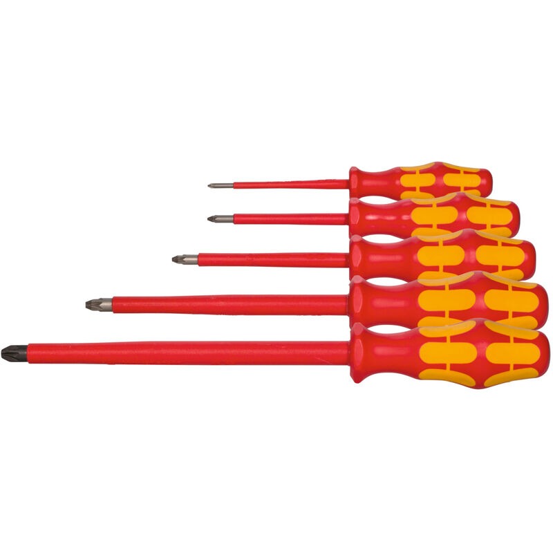 Impugnatura e lama completamente isolate fino a 1000 V secondo DIN EN 60900 / VDE 0682-201. Ogni giraviti viene testato singolarmente in acqua contro la scossa elettrica. L'impugnatura Kraftform in plastica resistente agli urti, con zone morbide integrate facilita la trasmissione del momento torcente e pertanto non stanca né mano né braccio. Lama in acciaio speciale altamente legato. Superficie cromata nicromatt, punte brunite o Lasertip rivestite chimicamente con nichel. Uso: Per lavori su impianti elettrici in tensione fino a 1000 V. Fornitura: cad. 1 chiave n. art. 668700: Dim. 0;
