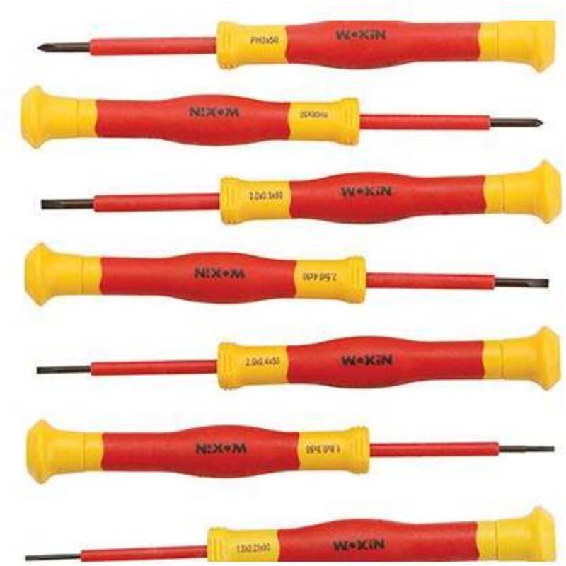 GIRAVITI ISOLATI CON IMPUGNATURA BIMATERIALE ANTISCIVOLO EN60900. CERTIFICATO VDE/GS. Pezzi: 7 In acciaio S2 temperato e indurito. Misure: Taglio Mm. 1,5x50, 1,8x50, 2.0x50, 2,5x50 e 3,0x50. In blister.